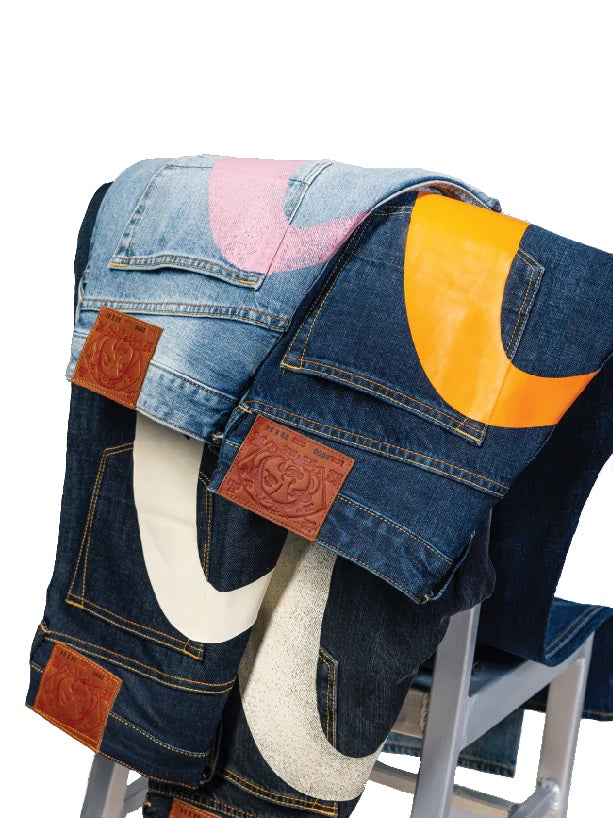 SEAGULL WITH KAMON PRINT POCKETS CARROT FIT JEANS #2017